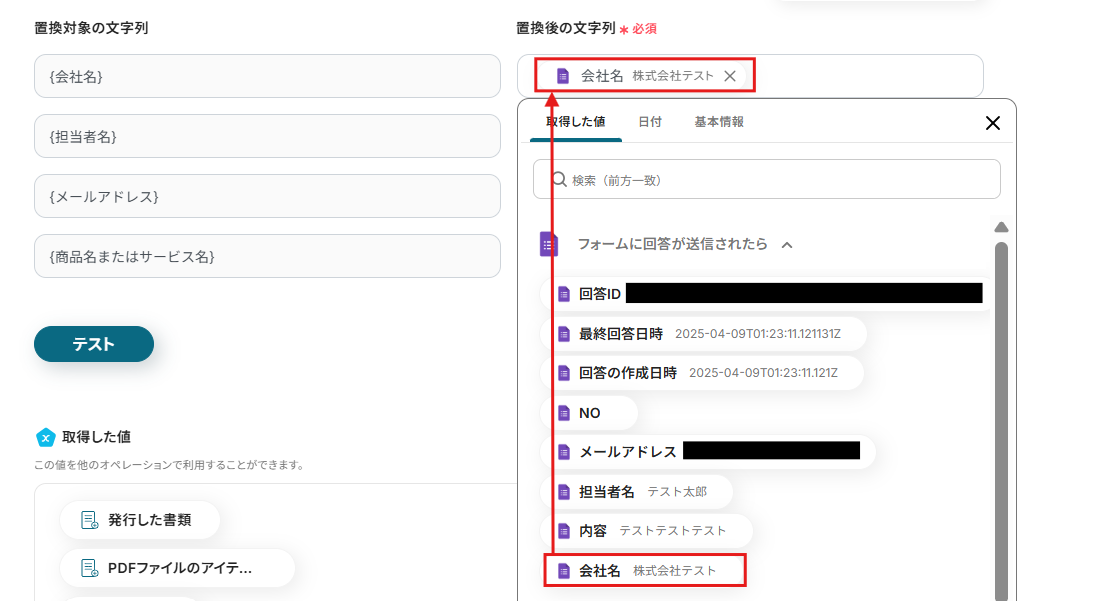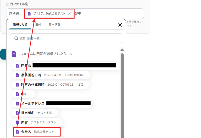 発行書類にGoogleフォームのデータが反映されているか、確認しましょう。