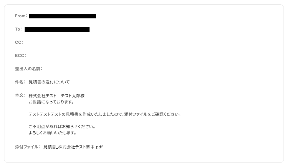 その後、Outlookを通じて自動的に顧客へ送付することが可能となります。これにより業務のスピードと正確性が向上します。