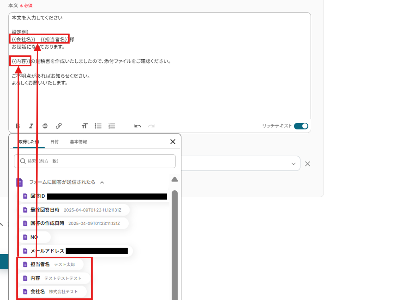 以下のアウトプットをこの後の設定時に引用することで、Microsoft ExcelとGmailのデータ連携を実現していきます!