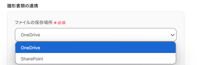 ファイルの保存場所は、OneDriveとSharePointから選べます。