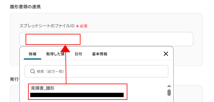 入力欄をクリックし、表示された候補の中から事前準備で用意した雛形を選択してください。