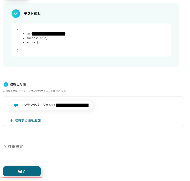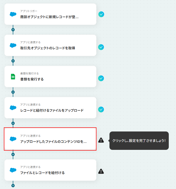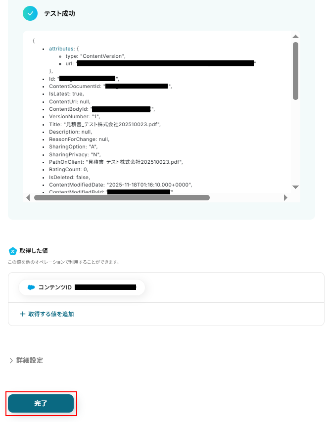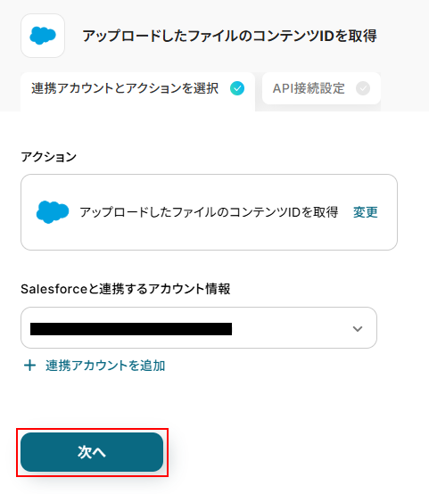ステップ7:SalesforceにアップロードしたファイルのコンテンツIDを取得する設定
