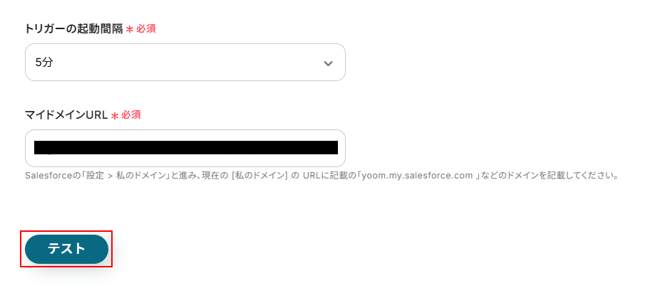 Yoomの画面に戻り、マイドメインURLを入力します。
