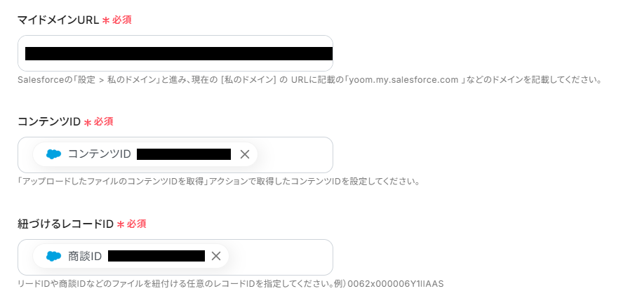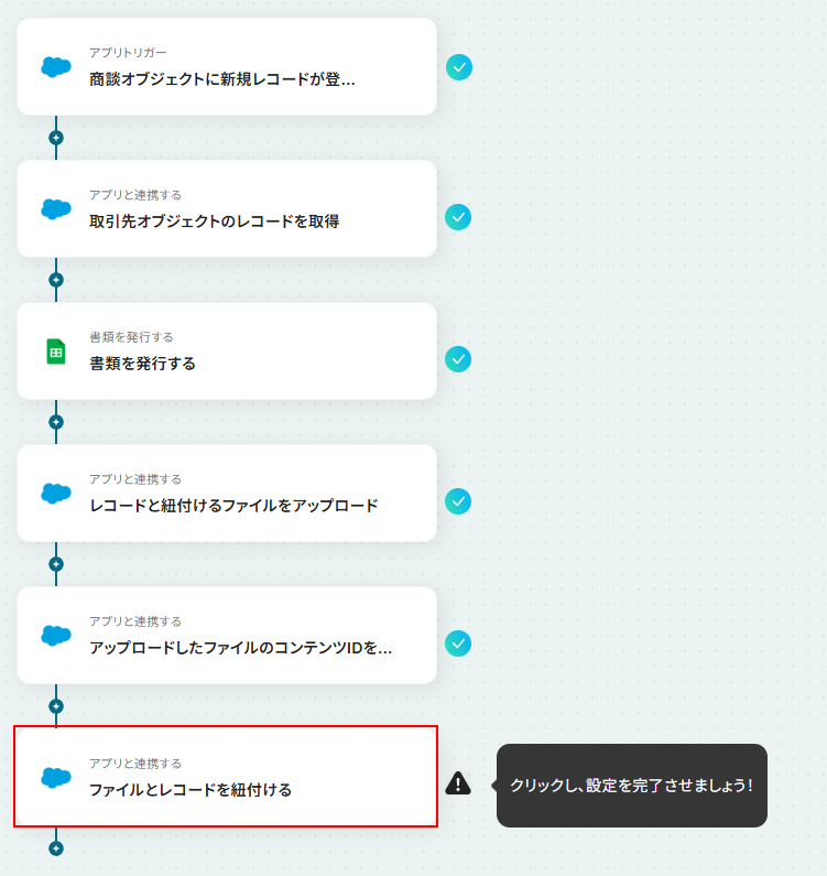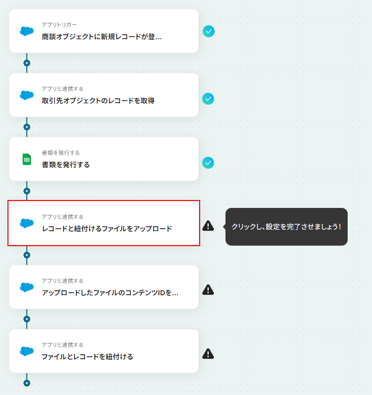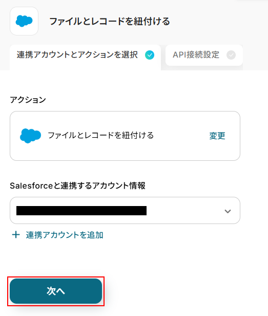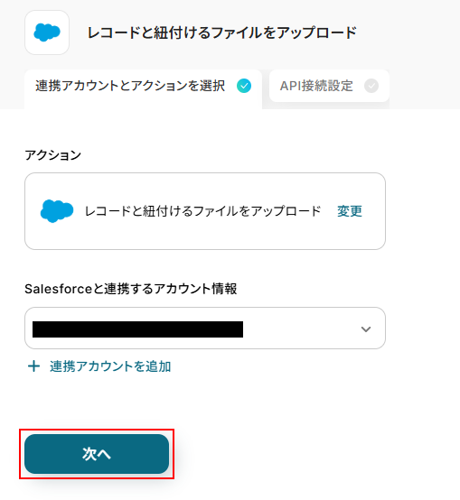 ステップ6:Salesforceのレコードと紐付けるファイルをアップロードする設定