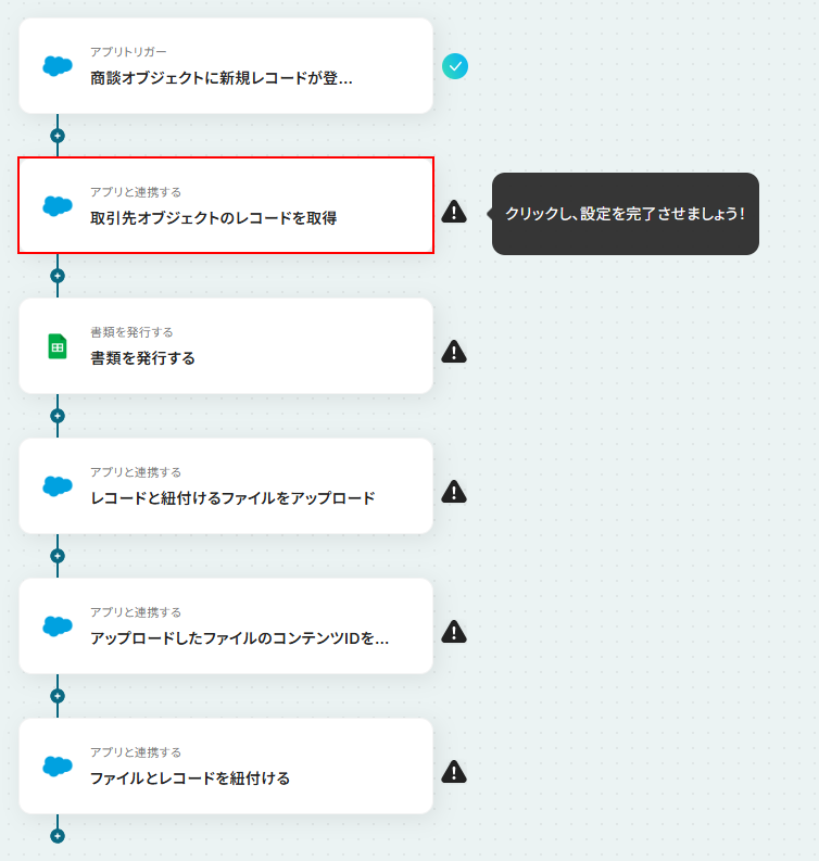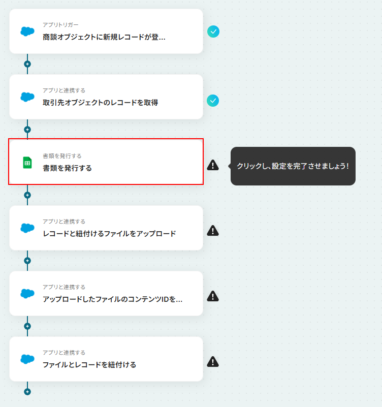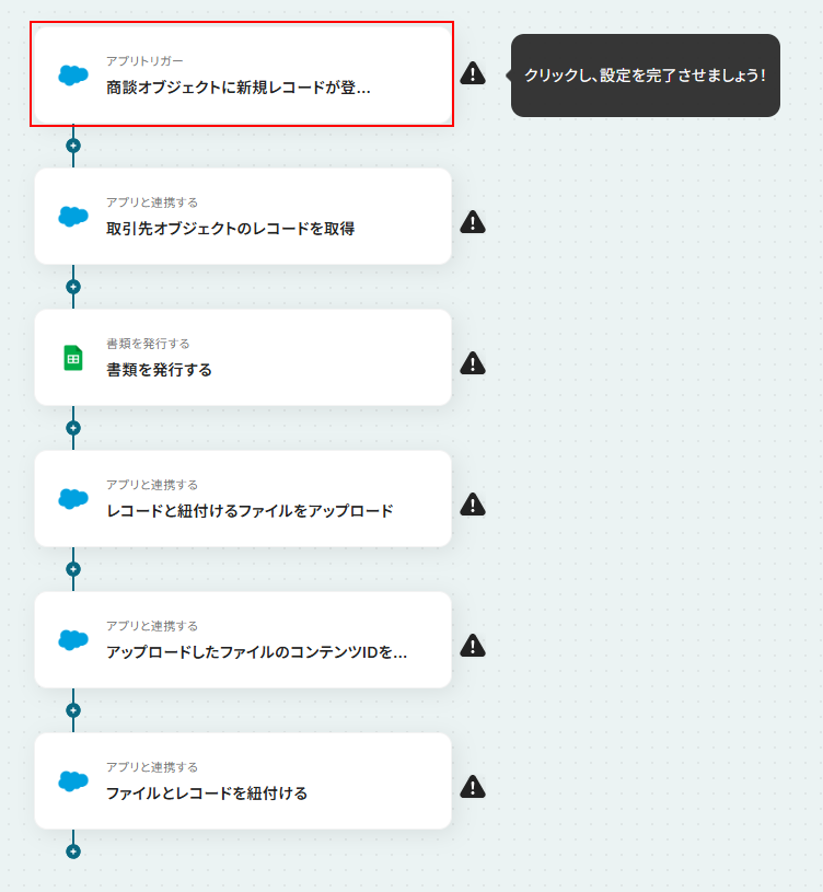 ステップ3:Salesforceの商談オブジェクトに新規レコードが登録された際の設定