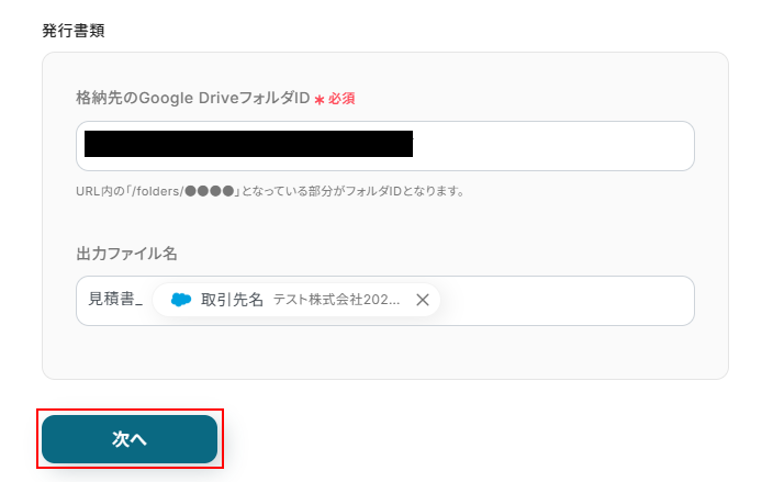 今回作成する見積書はレコードと紐付けるだけではなく、Google Driveにも保存します。