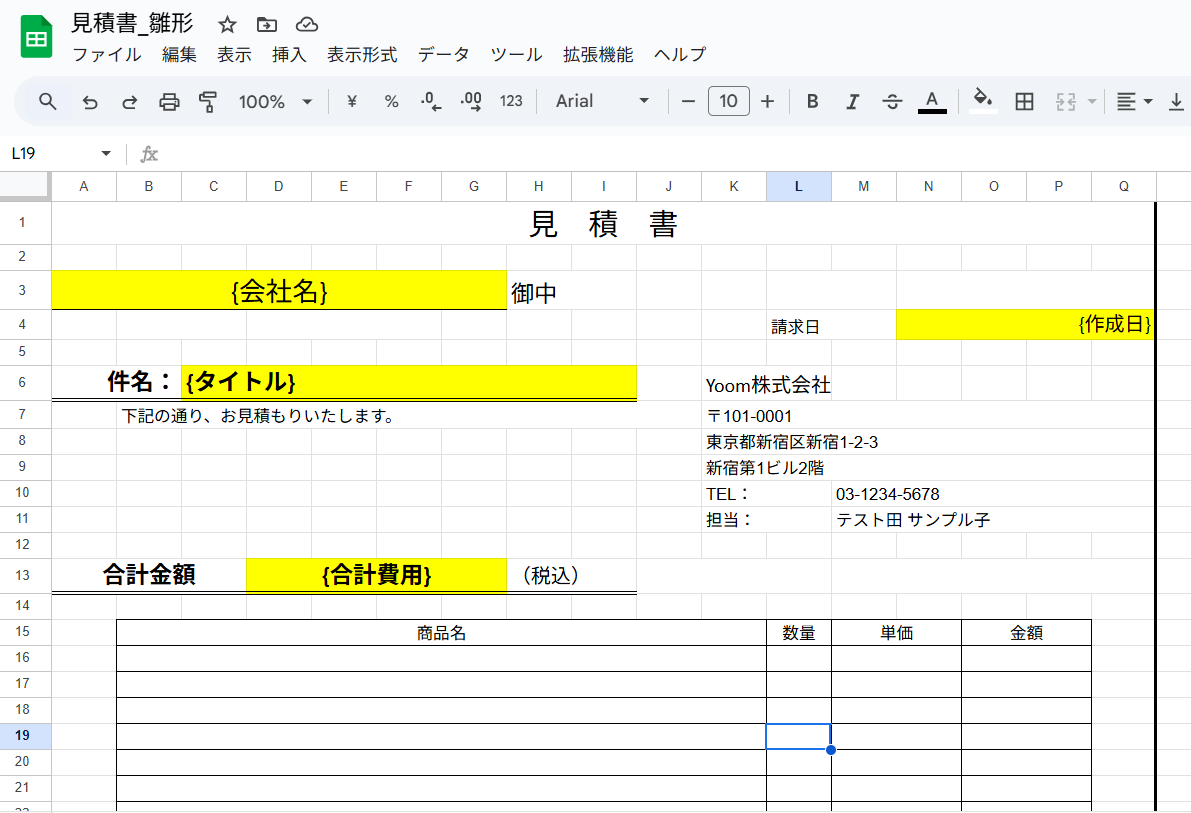 2 Google スプレッドシートを利用して雛形ファイルを作成する