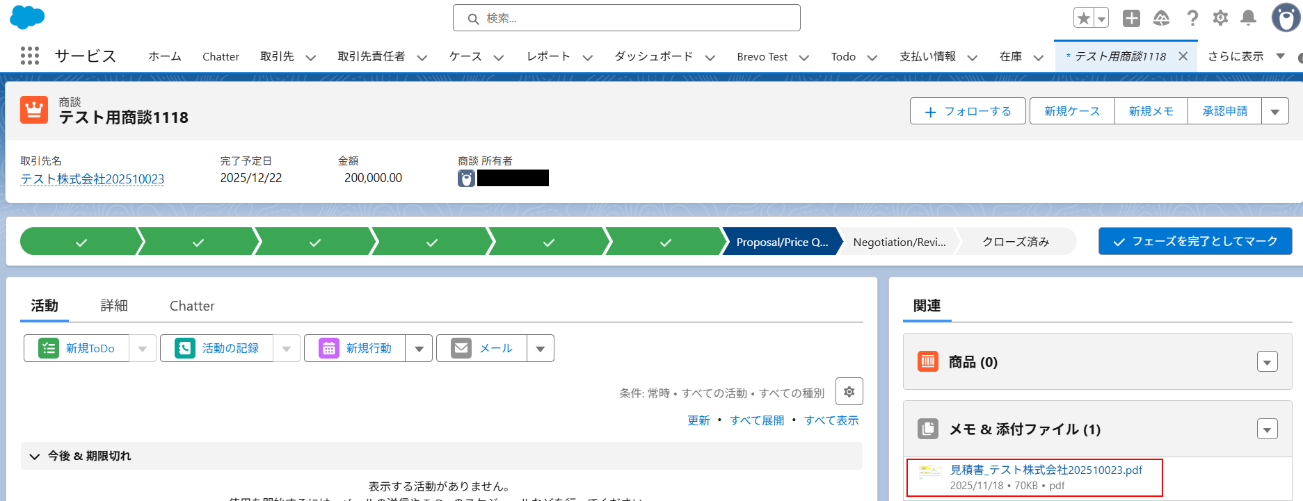 クラウドサインで書類の締結が完了した場合、Salesforceの商談フェーズを自動的に更新します。