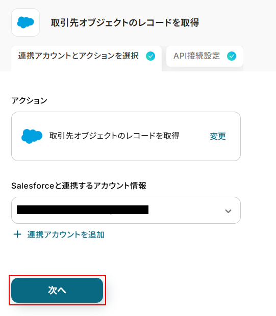ステップ4:Salesforceの取引先オブジェクトのレコードを取得する設定