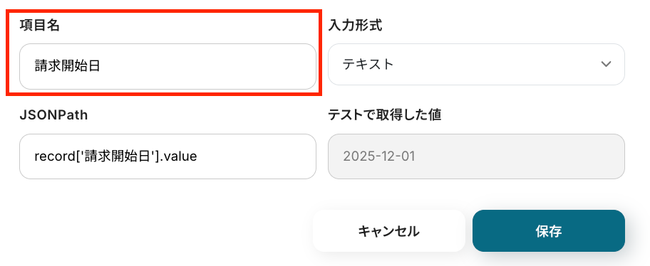 - 最後に、オペレーションでboardの「案件の登録(定期請求)」アクションを設定し、トリガーで取得した情報を連携します。