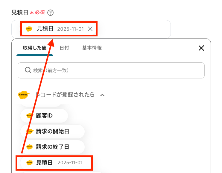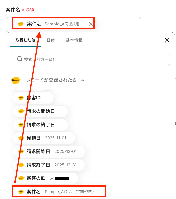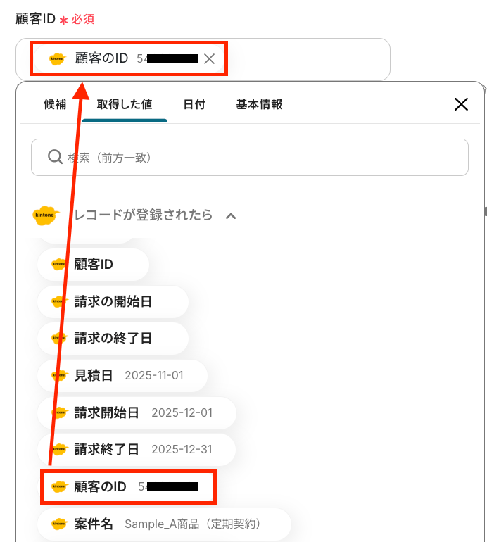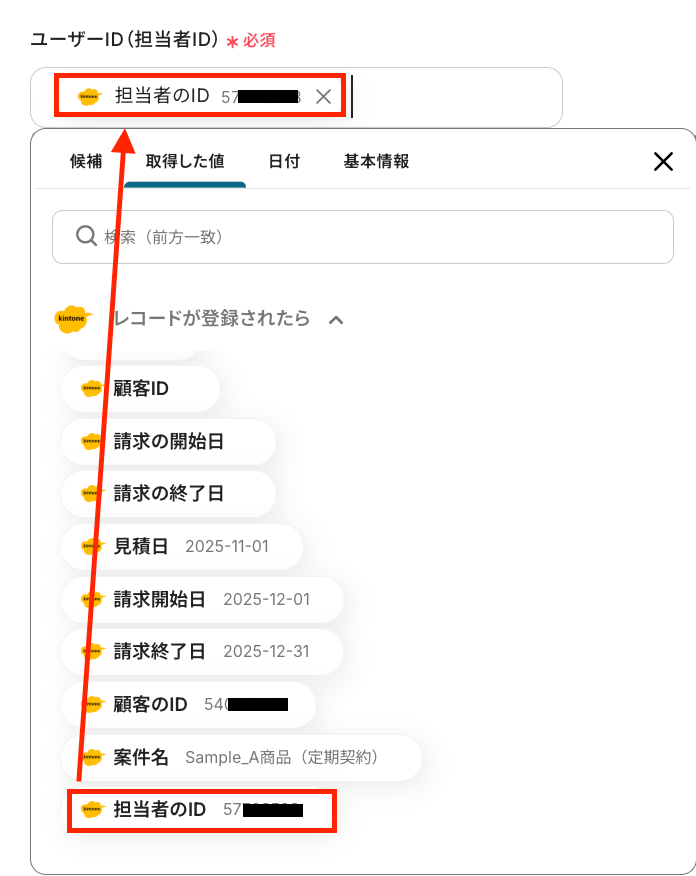 - kintoneのレコードにboardの顧客IDや担当者IDを記載してください。