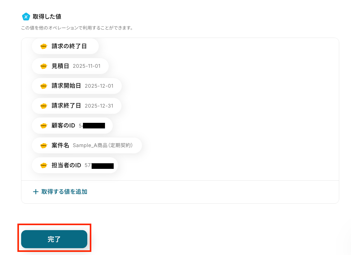 - 最後に、オペレーションでboardの「顧客の登録」アクションを設定し、取得・生成した情報を元に顧客データを登録します。