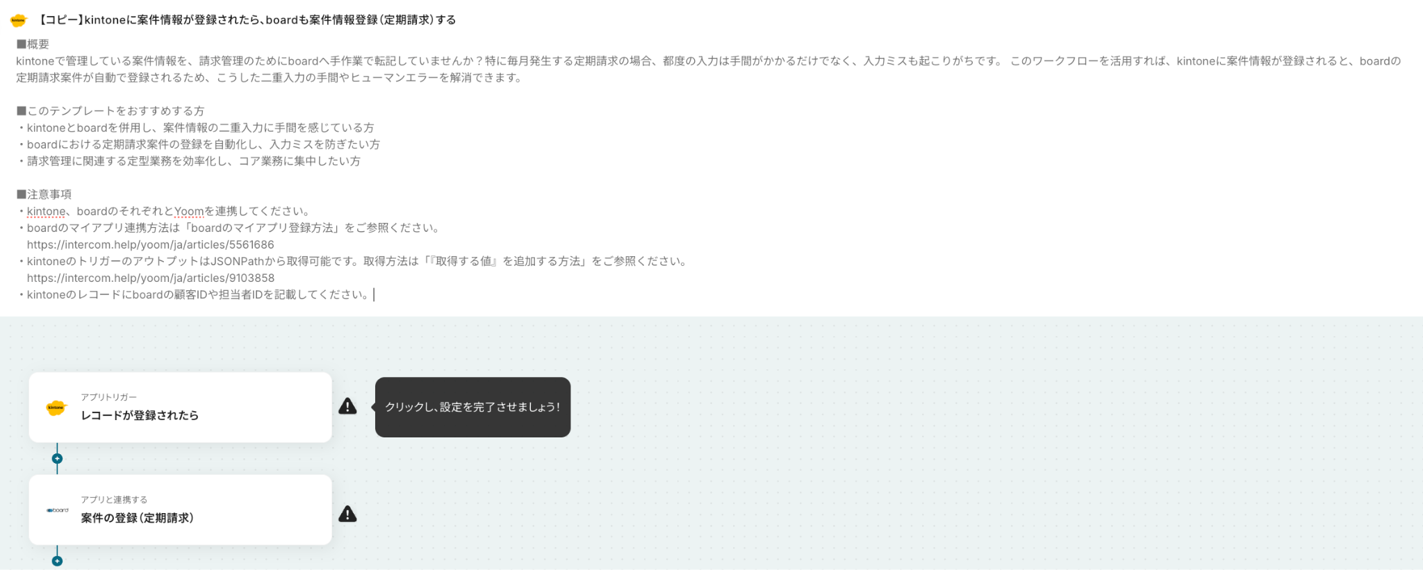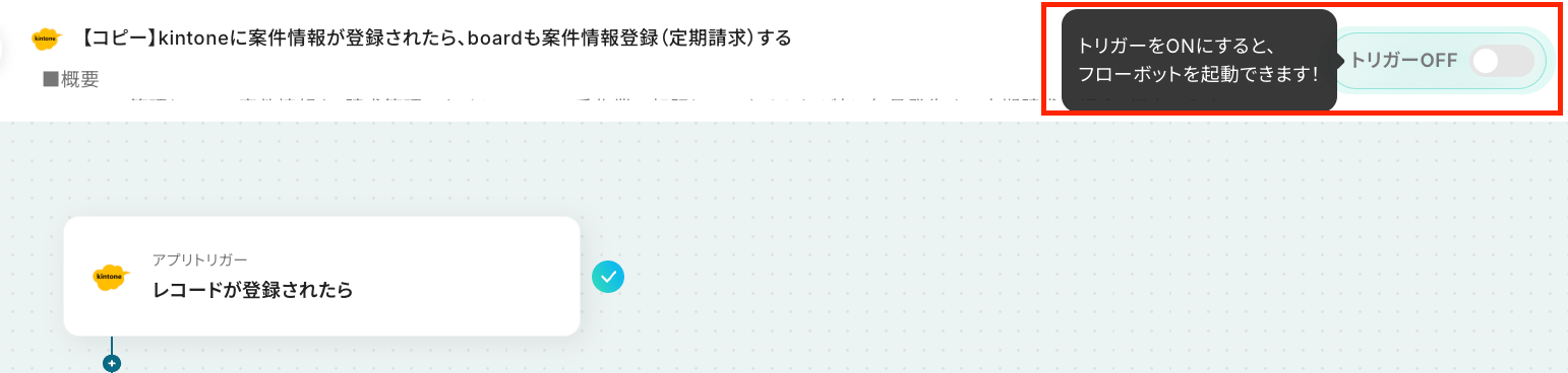 それではここから代表的な例として、「kintoneに案件情報が登録された際にboardに案件情報と定期請求設定を自動で登録する」フローの設定手順を解説していきます!