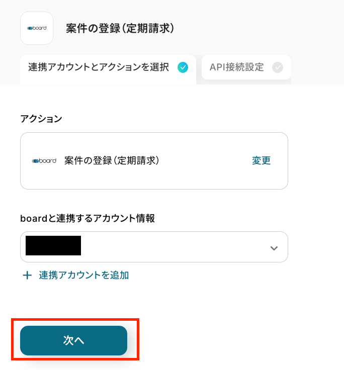 - boardに顧客情報を登録するアクションで、ご自身のboardアカウントのAPIキーを設定してください。