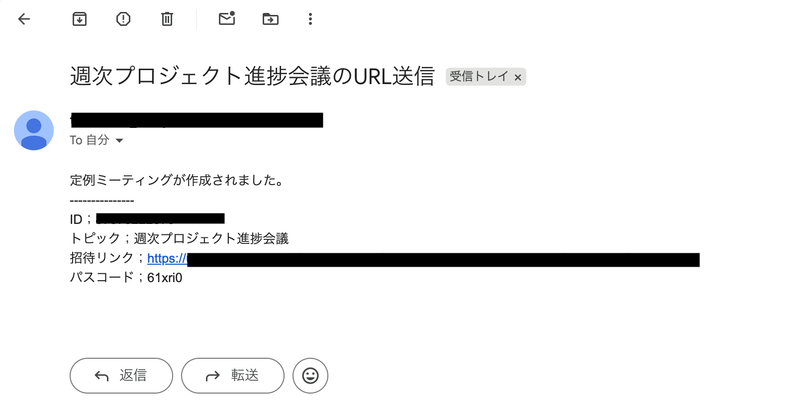 Zoomで作成した定例ミーティングについて、メールで通知するための設定をします。