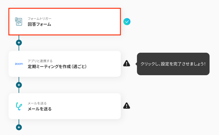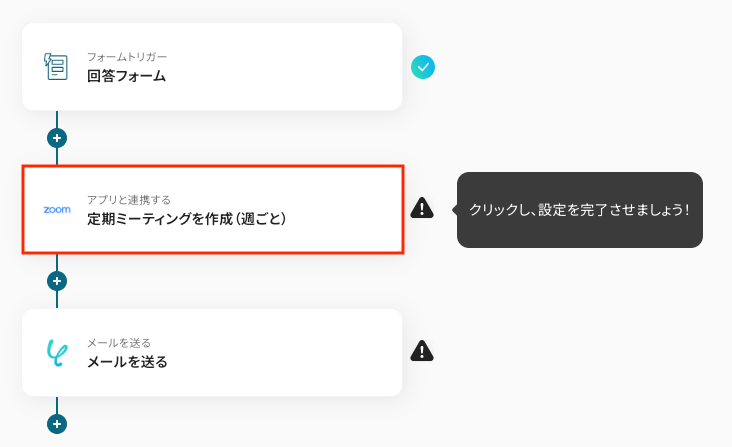 それではここから代表的な例として、フォームへの回答が送信されたら、Zoomで週ごとの定例ミーティングを自動で作成するフローを解説していきます!