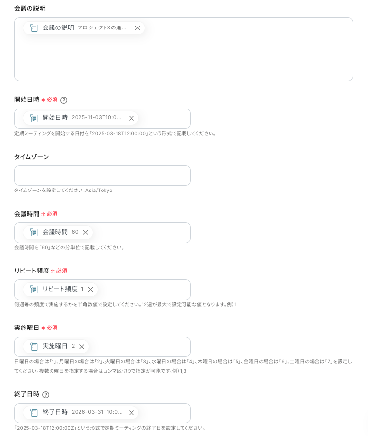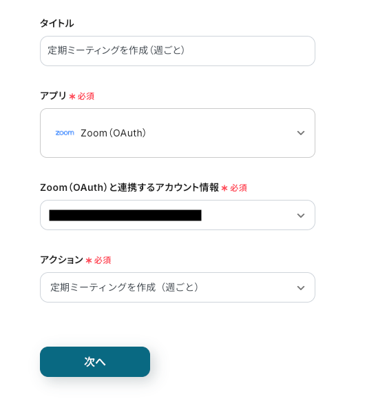 フォームから回答が送信されたら、Zoomで週ごとの定例ミーティングを作成する