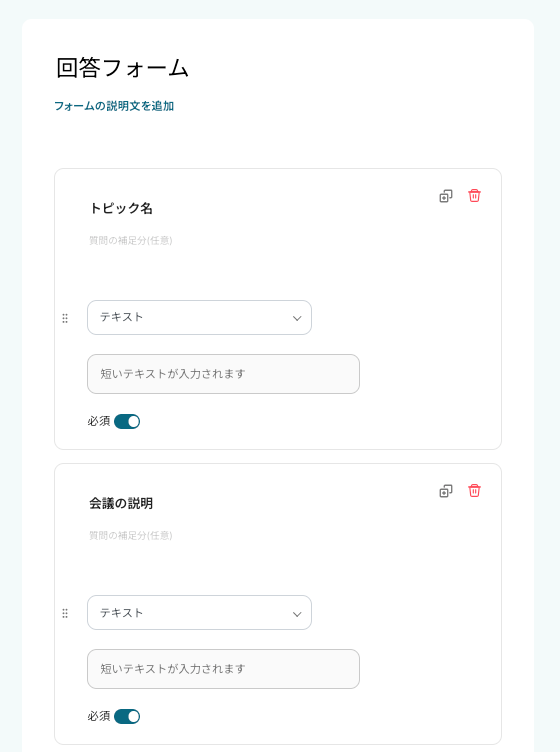 質問を追加したい場合は、フォームの基本設定・オプション設定についてを参考に設定してみてください。
