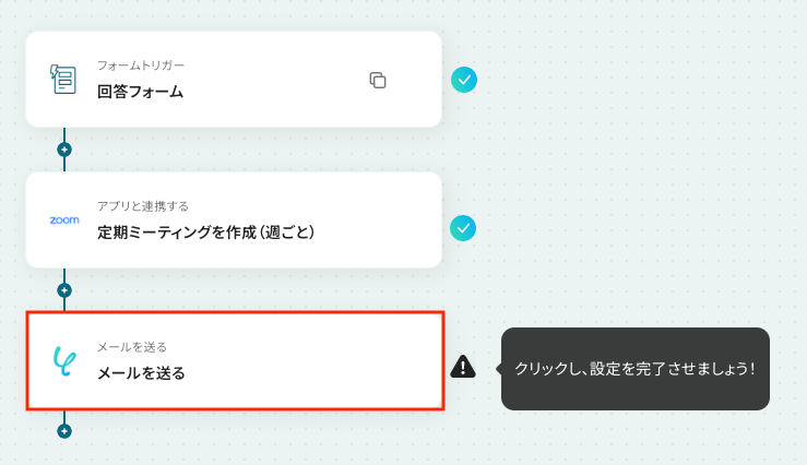- フォームのトリガー設定、Zoomとメールのアクション設定