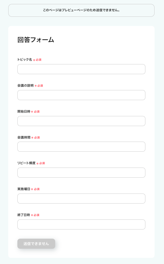 なお、画面右上の「プレビューページ」をクリックすると、フォームの入力ページを確認できます。