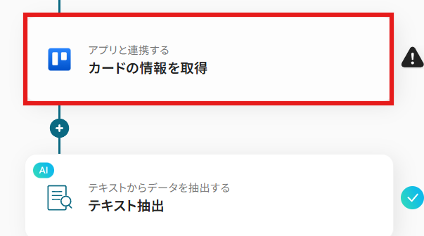 次に、Trelloのカードの情報からテキストを抽出するアクションの設定を進めていきましょう。