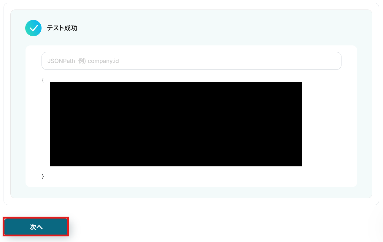 テストが成功し、取得した値が表示されたら設定を保存して進みます。