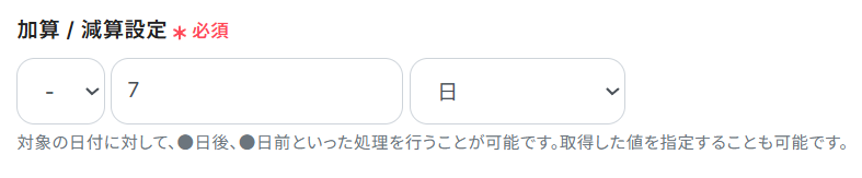 加算/減算設定では、対象の日付に対して●日前・●日後という処理ができます。