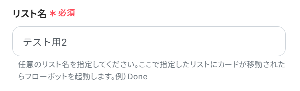 この後の連携テストのためにカードを移動させる必要があるので、テスト用のカードを作成し、任意のリストに移動させておきましょう。