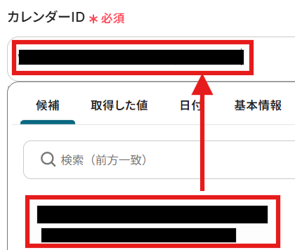 カレンダーIDを入力します。候補の中から選択しましょう。