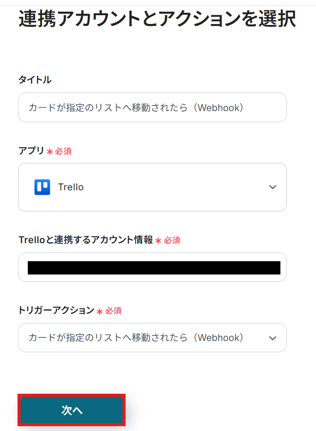 次に、Trelloで移動させたカードの情報を取得するアクションの設定を進めていきましょう。