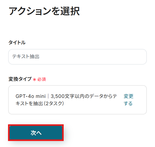 変換タイプはテキスト抽出に使用するAIのモデルを選択できます。