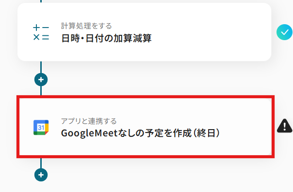 次に、Googleカレンダーにリマインドのための予定を作成するアクションを設定していきましょう。