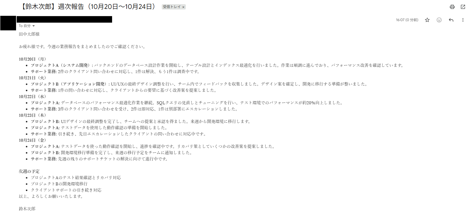 今回は以下のようなメールを作成しました!