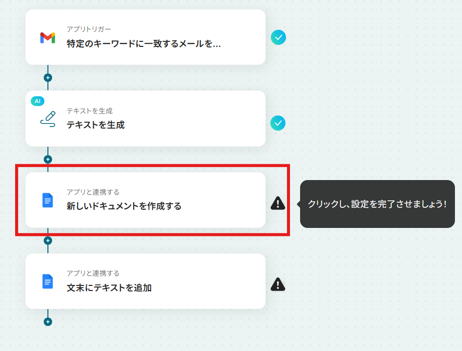 Google ドキュメントの「新しいドキュメントを作成する」オペレーションは削除しておいてくださいね。