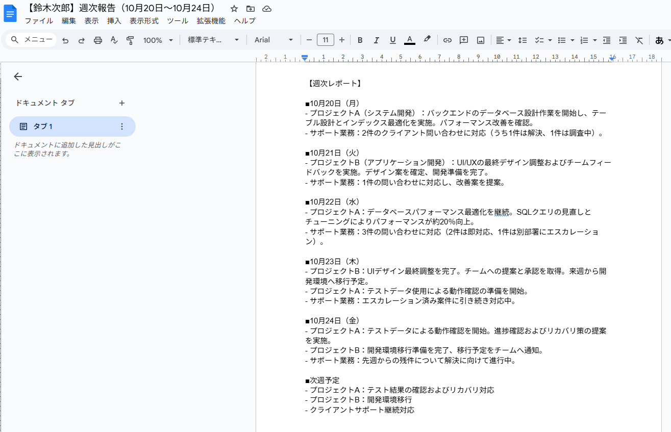 ・複数のメンバーからの報告メールを元に、ドキュメントを作成しているチームリーダーの方