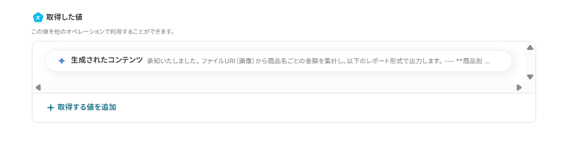 このプロセスを自動化することで、日々の業務でGoogle スプレッドシートに新しいデータを追加する際、その内容を自動で要約しチームメンバーに素早く共有することできます。