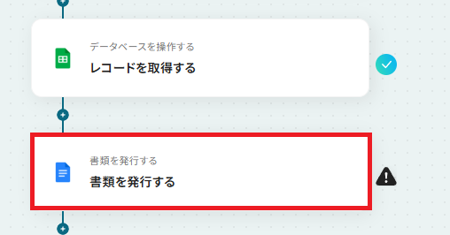 ステップ5:Google ドキュメントのアクション設定 履歴書を作成する設定を行います。 「書類を発行する」を、クリックしてください。