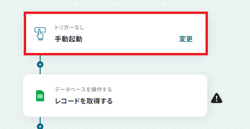 ステップ3:手動で起動する 今回のテンプレートでは「手動起動」を使用します。この機能を使うことで、任意のタイミングでフローボットを起動できます。 特定のタイミングではなく、人(担当者)による任意のタイミングで起動させたい場合に利用されます。 ※詳しくは「手動起動の設定方法 」をご確認下さい。