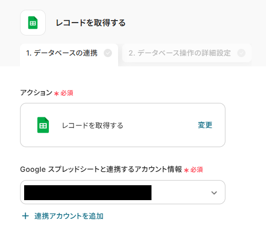 作成が完了したら、Yoomに戻って「レコードを取得する」をクリックしてください。