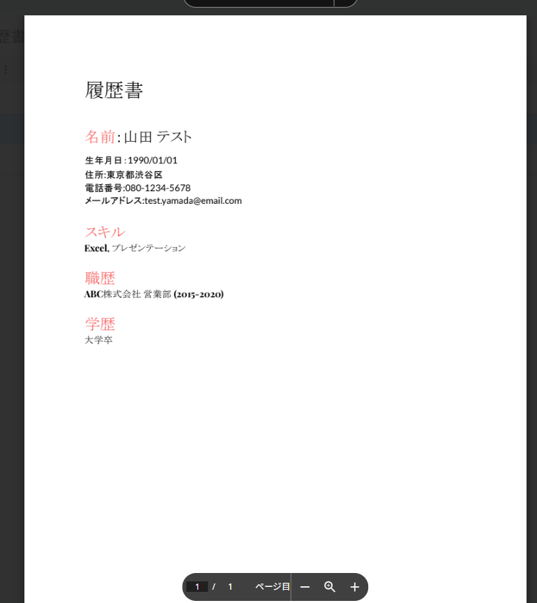 自動作成された履歴書は【Googleドキュメント形式】と【PDF形式】で出力されます。