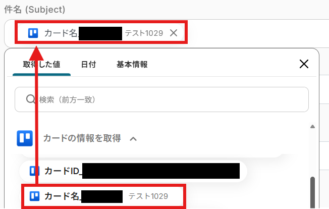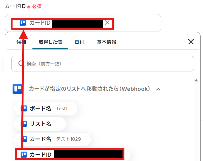 「カードID」を「取得した値」から設定しましょう。