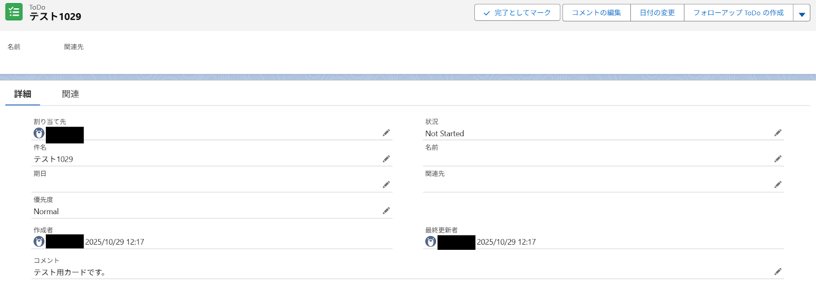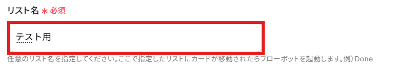 先ほど作成したカードを「リスト名」に設定したリストに移動させたら「テスト」を行います。