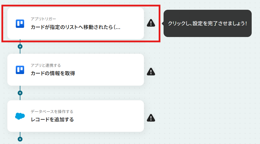 それではここから代表的な例として、Trelloのカードが指定のリストに移動したら、Salesforceにタスクを自動で作成するフローを解説していきます!