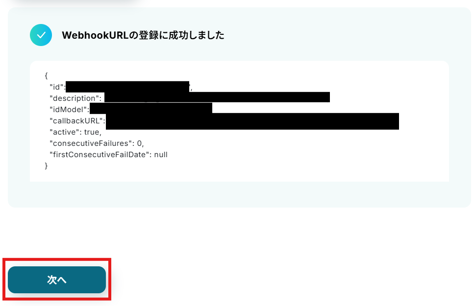 設定できたら「WebhookURLを登録」をクリックします。