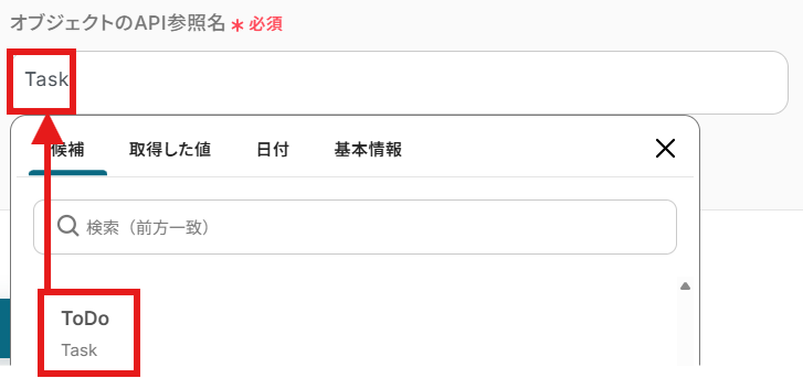 「オブジェクトのAPI参照名」を候補から選択しましょう。