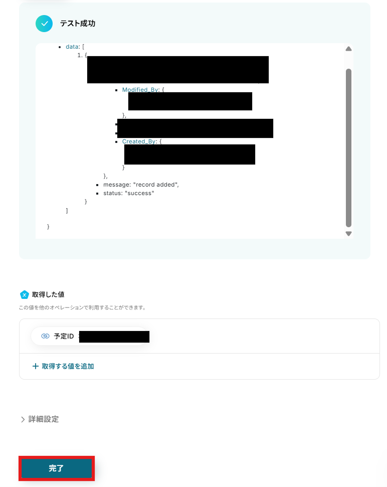 テストが成功するとZoho CRMに予定が作成されていますので、確認してみてください。