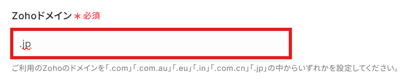 Zohoドメインを入力します。