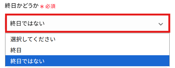 終日かどうかを選択します。