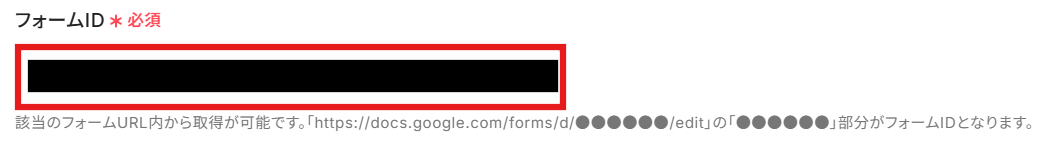 フォームIDの欄に、用意しておいたGoogleフォームのIDを入力します。