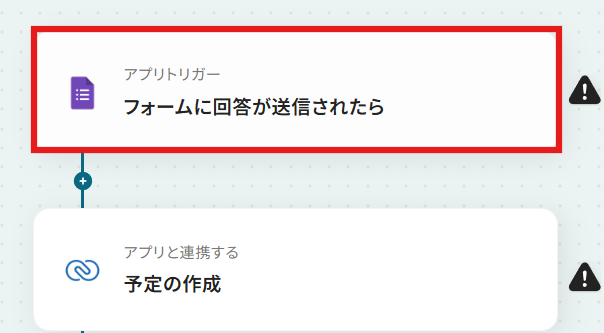 Googleフォームに予定情報の回答があったら、Googleカレンダーに予定を追加するフローです。
